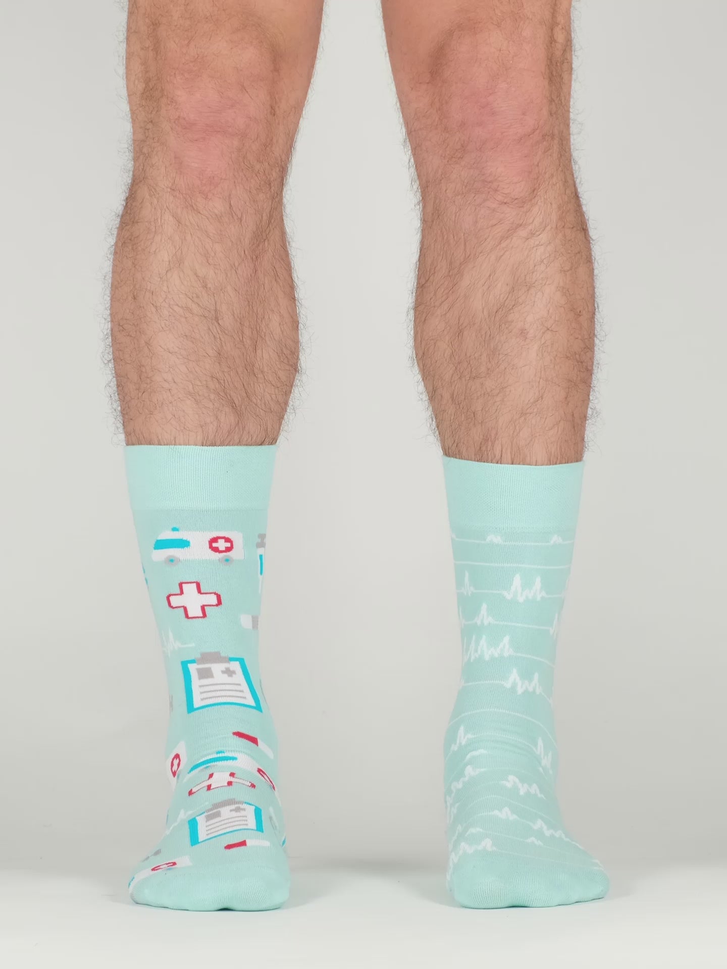 Der Arzt behandelt, ein Lächeln heilt. Bereits 20 Minuten Lachen am Tag können dein Gedächtnis, dein Immunsystem, deinen Schlaf und deinen Blutdruck fördern. Denk jedes Mal daran, wenn du diese Dedoles-Socken trägst. Sie werden die Krankheit zwar nicht heilen, aber sie sorgen für eine Dosis gute Laune und Trost.